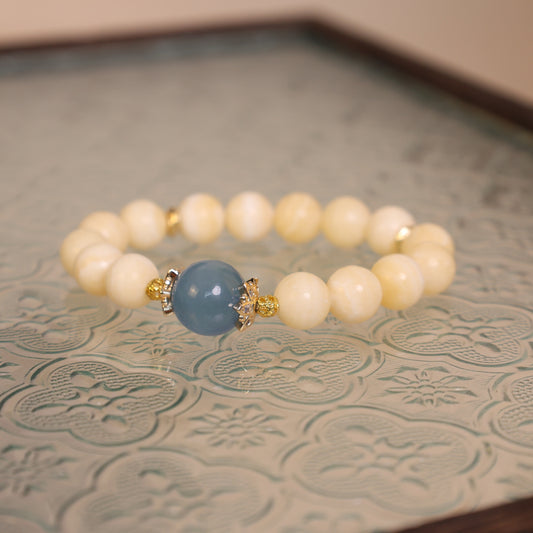 "Golden Solstice“- Sun Kissed Calcite & Ocean's Aquamarine Crown Beaded Bracelect