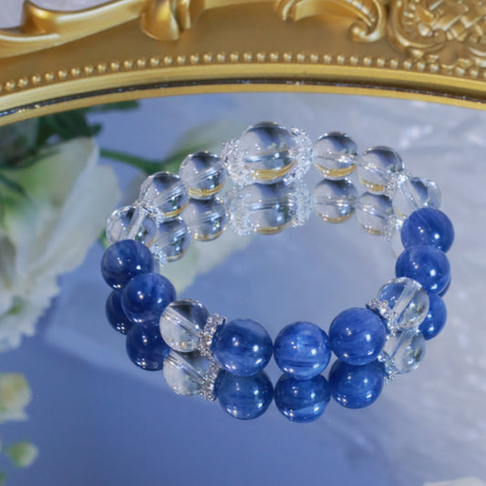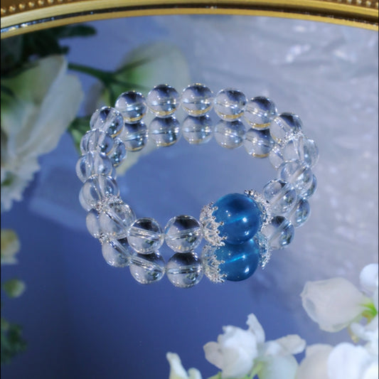 CLEAR QUARTZ AND BLUE QUARTZ BEADED BRACELET,PURIFYING UR SOUL