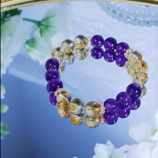 CITRINE PYRAMID AND URUGUAY AMETHYST BEADED BRACELET,WEALTHY AND INDEPENDENT