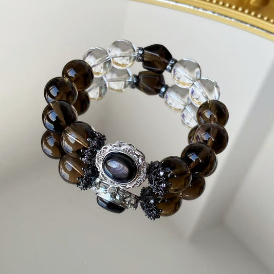 "ROOTED IN LIGHT" – SMOKY CRYSTAL & CLEAR CRYSTAL BEADED BRACELET
